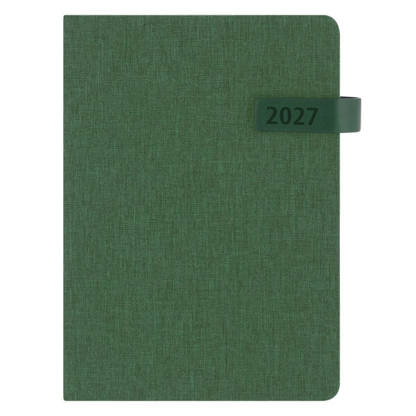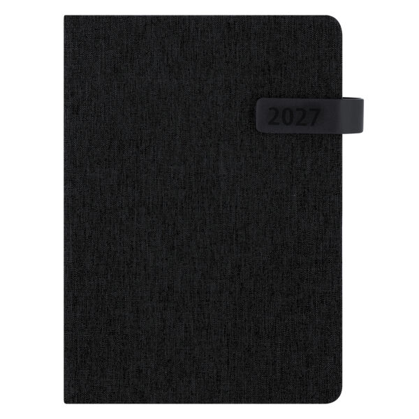 5-agenda van gerecycled RPET-polyester. Met stevige harde kaften in tweekleurig design, PU-magnetische sluiting en bijpassend leeslint. Dagindeling per pagina met ruimte voor notities. Tweetalige editie: Spaans en Engels. Individueel verpakt geleverd. Het RPET-materiaal wordt vervaardigd uit gerecycled plastic, waardoor afval een nieuw leven krijgt en bijdraagt aan een duurzamere planeet.