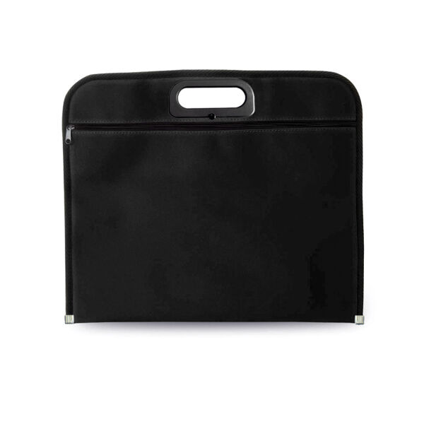 Documententas met ritssluiting van zachte 600D polyester in diverse kleuren. Met gestanste, versterkte handgrepen en zwarte biezen met metalen plaat, versterking aan de onderzjide.