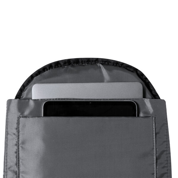 Antidiefstalrugzak van resistent 300D polyester. Hoogwaardige stof die bestand is tegen snijwonden en wrijving, met antidiefstalvak aan de achterkant om waardevolle spullen in op te bergen. Hoofdvak met ritssluiting uitgerust met een powerbank-aansluiting - niet inbegrepen - en twee onafhankelijke en gewatteerde binnenvakken voor een laptop tot 15 inch en voor tablets tot 10 inch, evenals aanvullende binnenvakken. Het heeft ook een buitenzak aan de voorkant met ritssluiting. Comfortabel om te dragen dankzij de gewatteerde rug en ergonomische en verstelbare handgrepen, evenals een trolleyaccessoire.